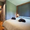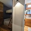 La zona notte composta da due ampie camere da letto matrimoniali e due con letti a castello viene completata con due bagni, uno con doccia e uno con vasca, lavatrice e asciugatrice di ultima generazione. Per offrire un soggiorno completo la suite ha doppio posto auto coperto e fornisce sulle piste un box deposito sci riscaldato.