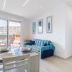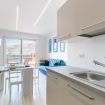 Appartamento moderno e luminoso, composto da soggiorno con angolo cottura, divano letto, camera matrimoniale, bagno e ampia terrazza.