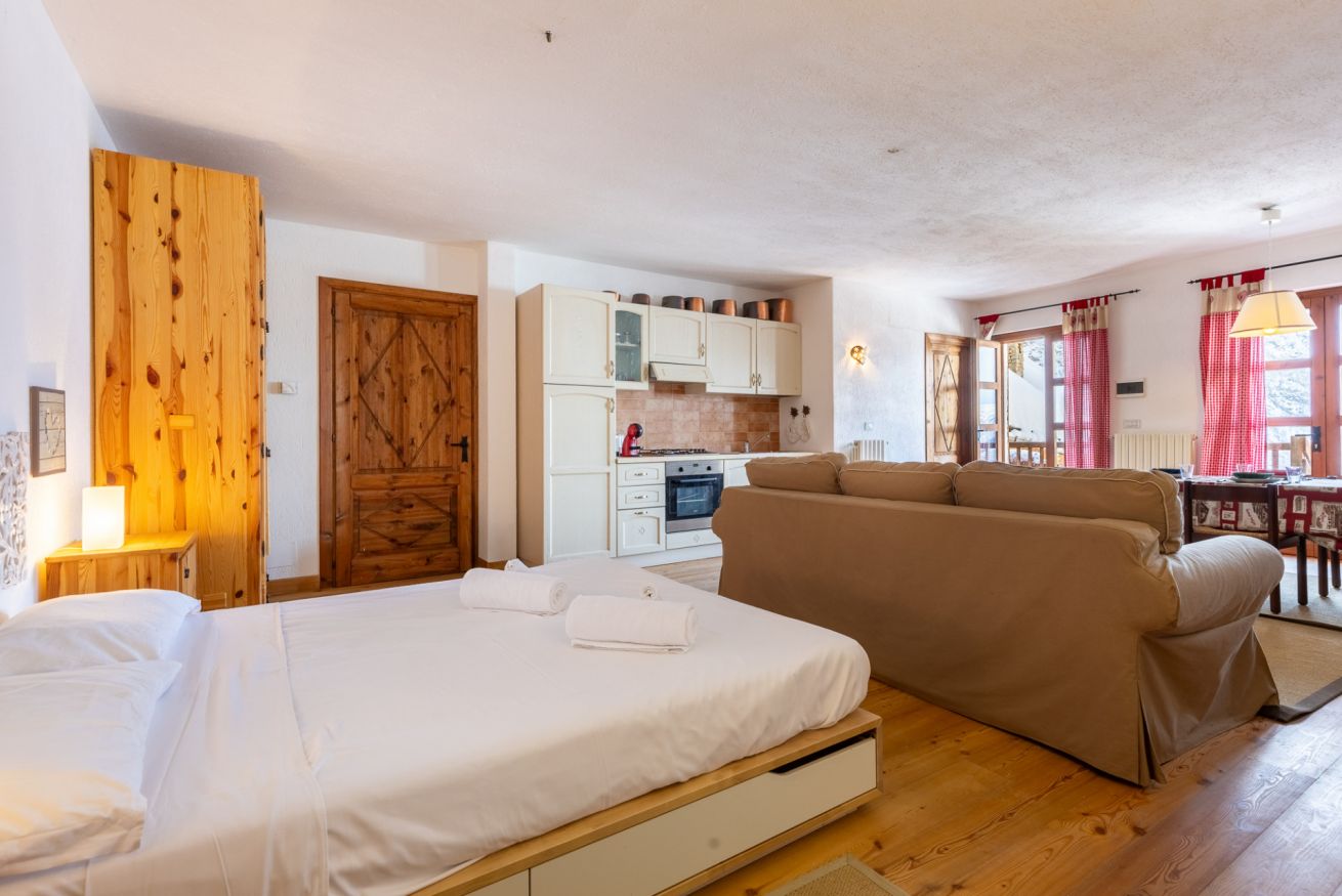 Il Castle Studio è un accogliente monolocale situato nel suggestivo borgo alpino di Bessen Haut (Bessè Alto), un antico villaggio di montagna restaurato che risale al 1700, immerso nella tranquillità delle Alpi italiane. A soli 10 minuti da Sestriere.