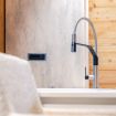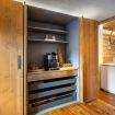 La cucina è minimalista, moderna e molto accogliente, un bellissimo armadio a scomparsa e un ampio spazio di lavoro affiancato ai più moderni accessori come lavastoviglie piano induzione, macchina del caffe, renderà un piacere preparare ottime cene.