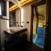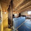 Al piano superiore un ampio soggiorno living con cucina moderna, e un bagno completo con doccia, lavatrice e asciugatrice.