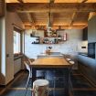 Il legno e la pietra sono le finiture che caratterizzano questo appartamento su due livelli.