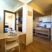 L'appartamento dispone di entrata su soggiorno con cucina attrezzata e zona pranzo.