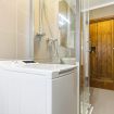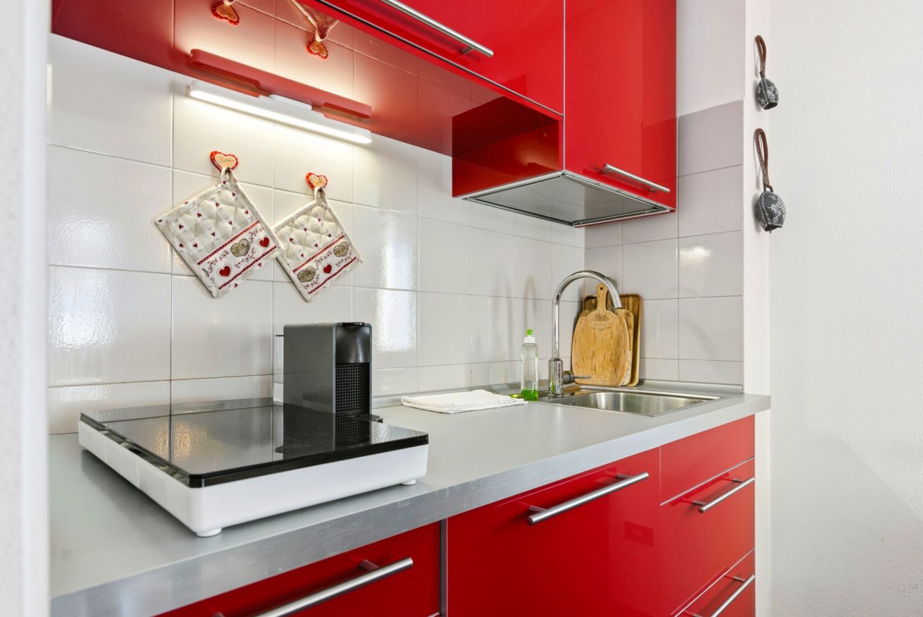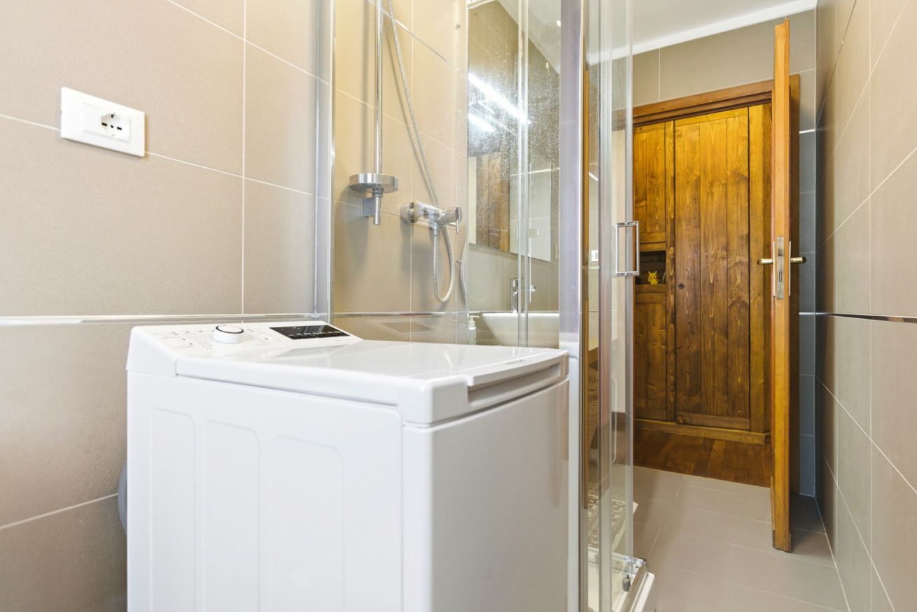 Il bilocale è composto da ingresso con ampi armadi, soggiorno con comodo divano e angolo cottura con frigorifero e piastre elettriche. La camera da letto ha un divano letto matrimoniale e guardaroba e il bagno finemente ristrutturato ha sia doccia che bidet.