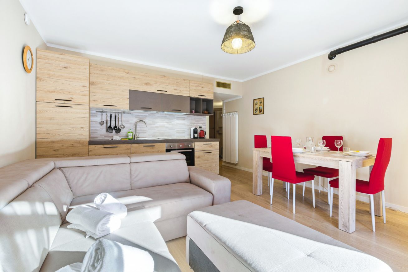 Composto da ampio soggiorno con cucina nuova, piastra induzione, grande divano letto e televisione, cameretta con letto a castello, camera matrimoniale, bagno con lavatrice e box doccia