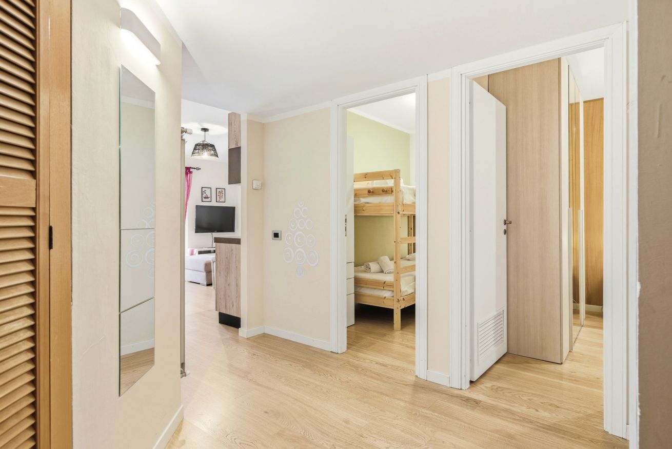 Trilocale completamente ristrutturato nel residence La Chapelle, dotato di campo da tennis, giardino e piscina estiva.