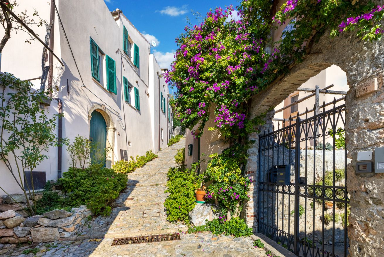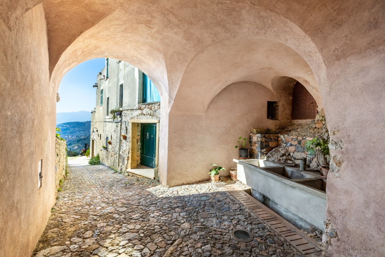 Meraviglioso appartamento recentemente ristrutturato nel borgo di Verezzi, con splendida vista sul mare e sul golfo.