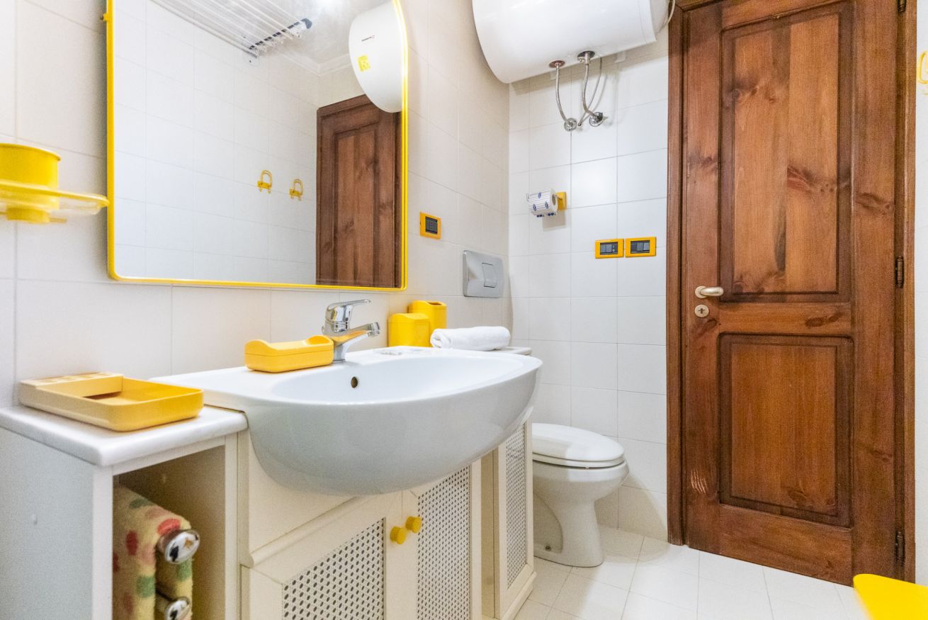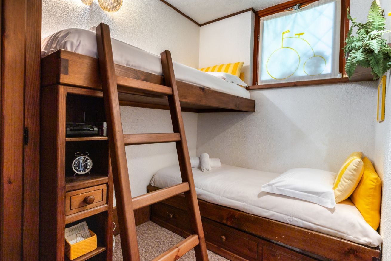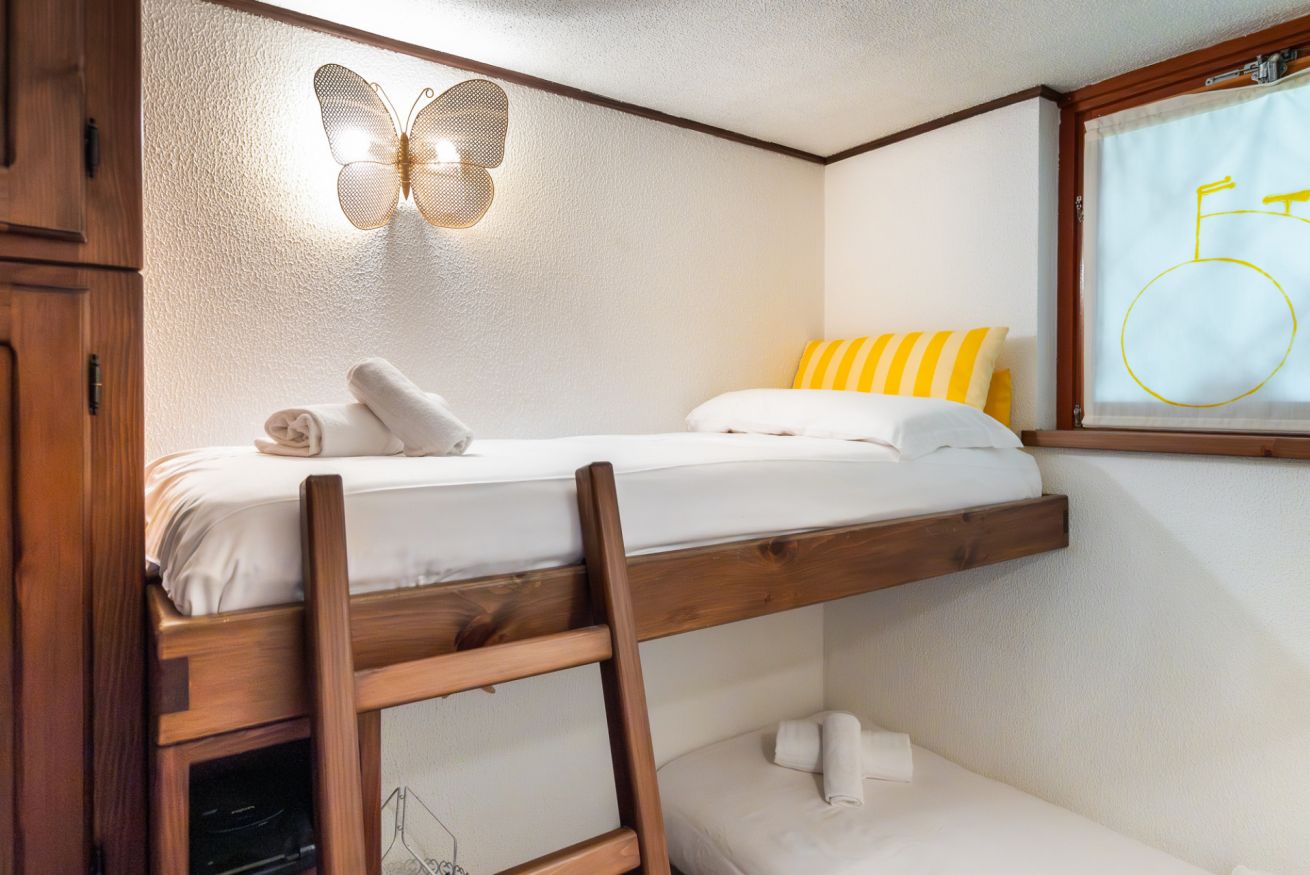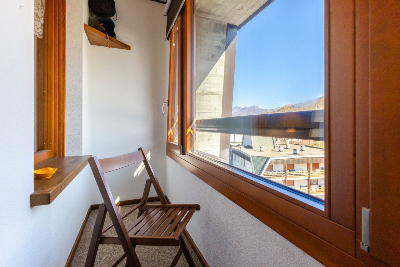 Dispone di un soggiorno con comodo divano letto matrimoniale, perfetto per riposarsi dopo una giornata sulla neve e di una camera con un letto a castello. Il balcone verandato regala una splendida vista panoramica sulle montagne, ideale per rilassarsi in ogni stagione.