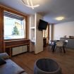Composto da due camere da letto e un grande soggiorno living con cucina fornita di frigorifero, lavastoviglie, piano induzione e forno, ti accoglierà in un’atmosfera moderna. Situato fronte piste, potrai dimenticare l’uso della auto, sia nei mesi invernali apprezzando la bellezza del comprensorio sciistico che nei mesi estivi dedicandoti all’escursionismo e relax.