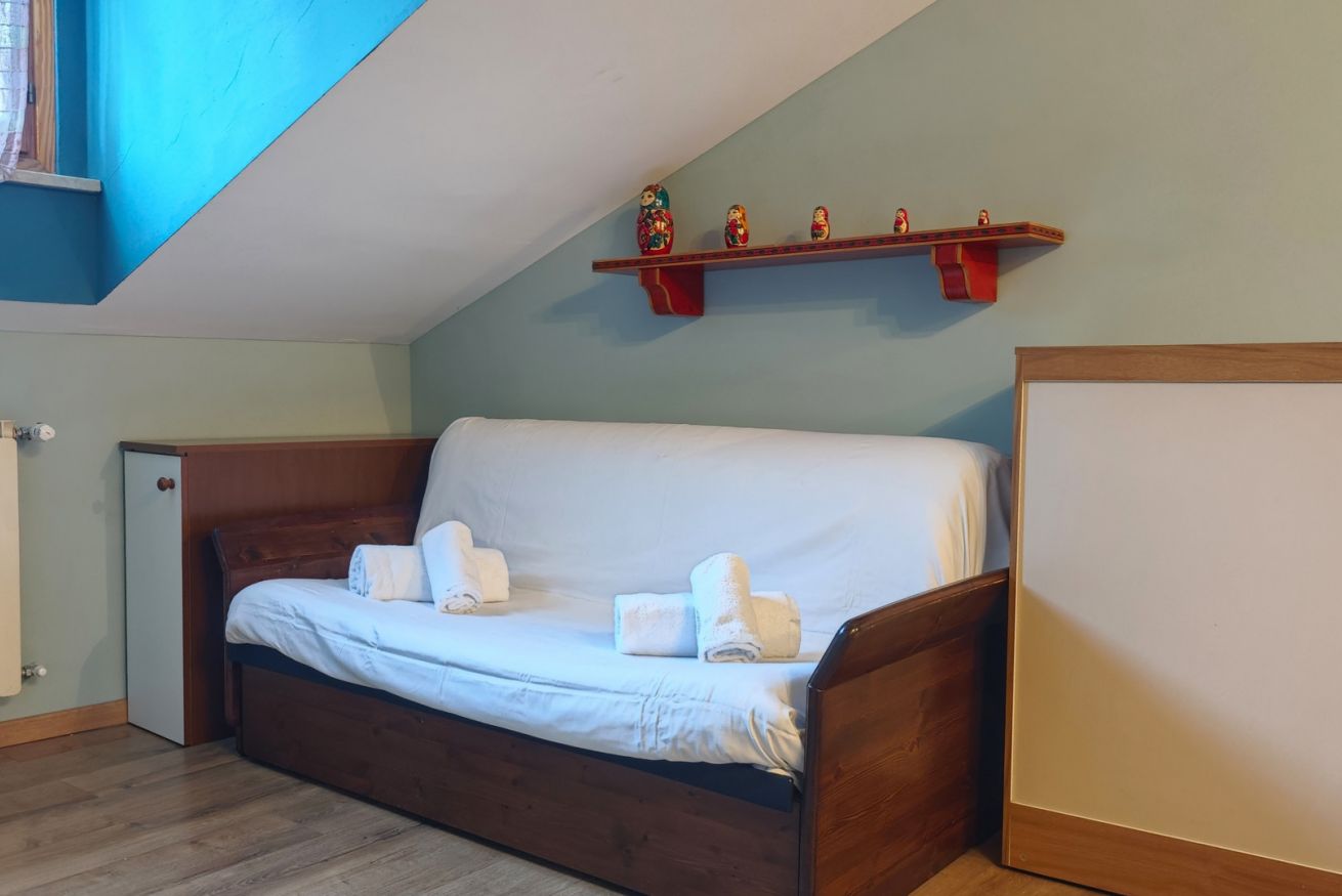 Petit Bleu è un accogliente monolocale situato in Via Roma 47, nel centro di Cesana Torinese. Perfetto per coppie con un bambino o viaggiatori singoli, può ospitare fino a tre persone grazie a un comodo divano letto e un letto singolo per bambini.