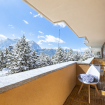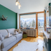 L’ambiente è luminoso e accogliente, grazie al balcone con splendida vista sulle montagne, perfetto per godersi un momento di relax dopo una giornata sulle piste o una passeggiata tra i sentieri alpini.