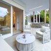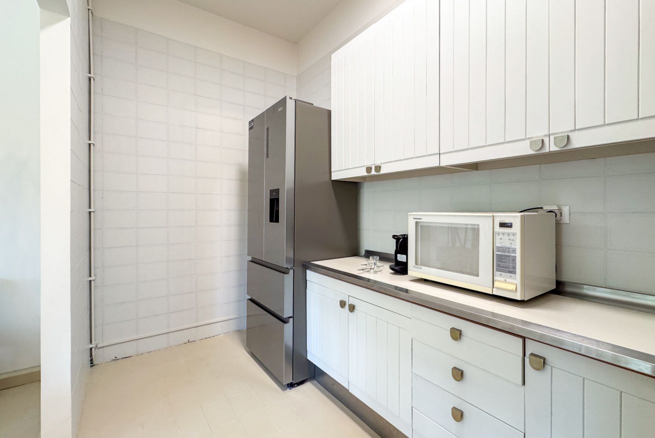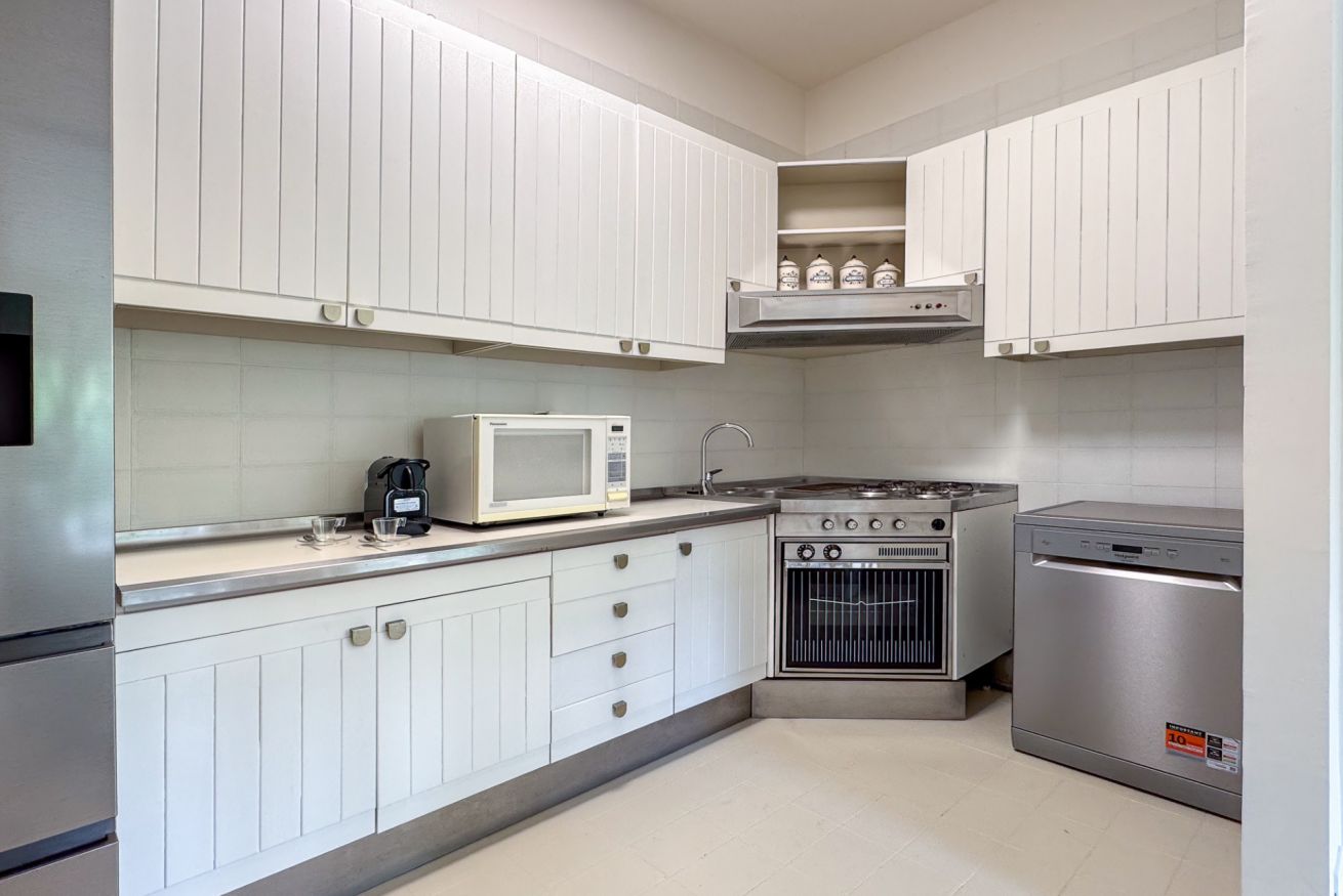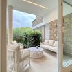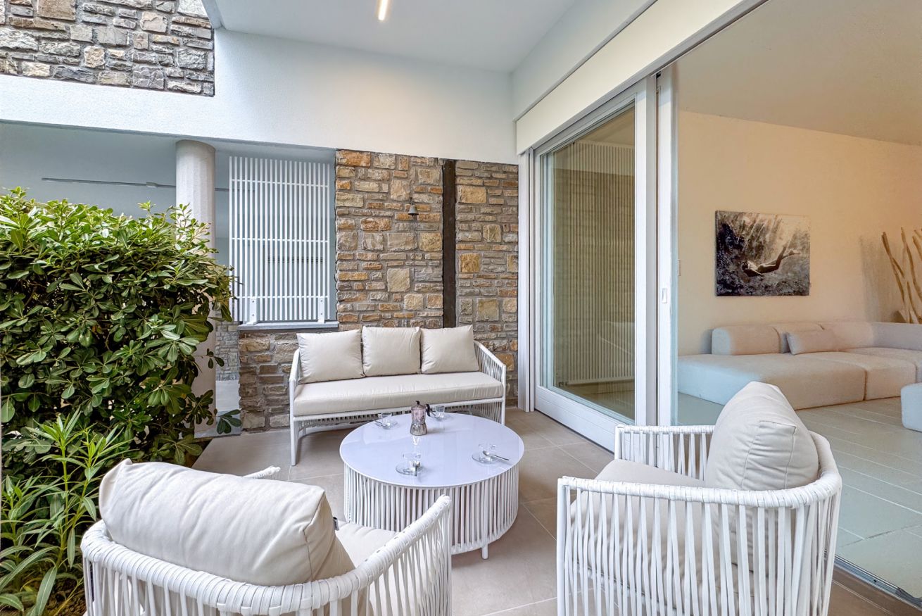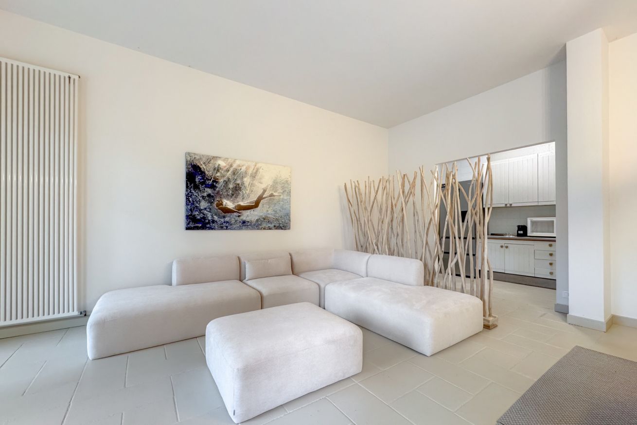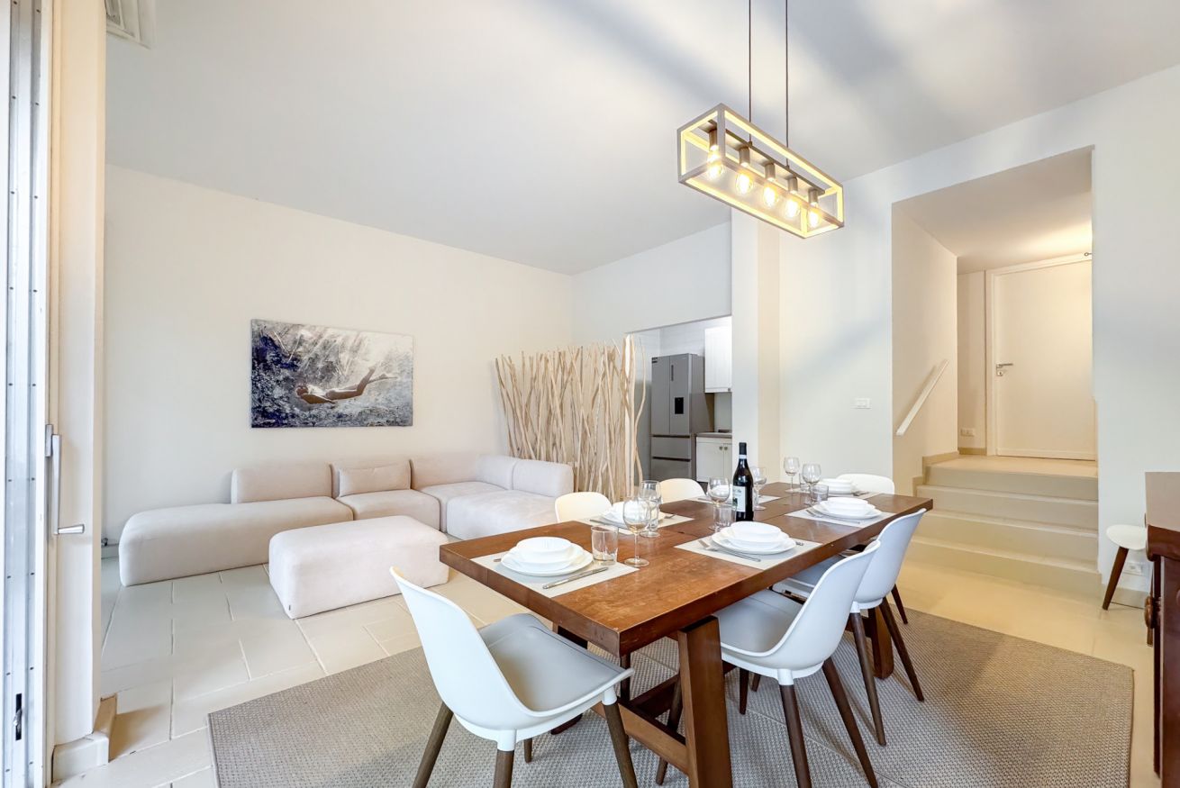 Luminoso e confortevole, offre un grande salone con vista sul verde e un ampio patio soleggiato ideale per relax e cene all’aperto.
