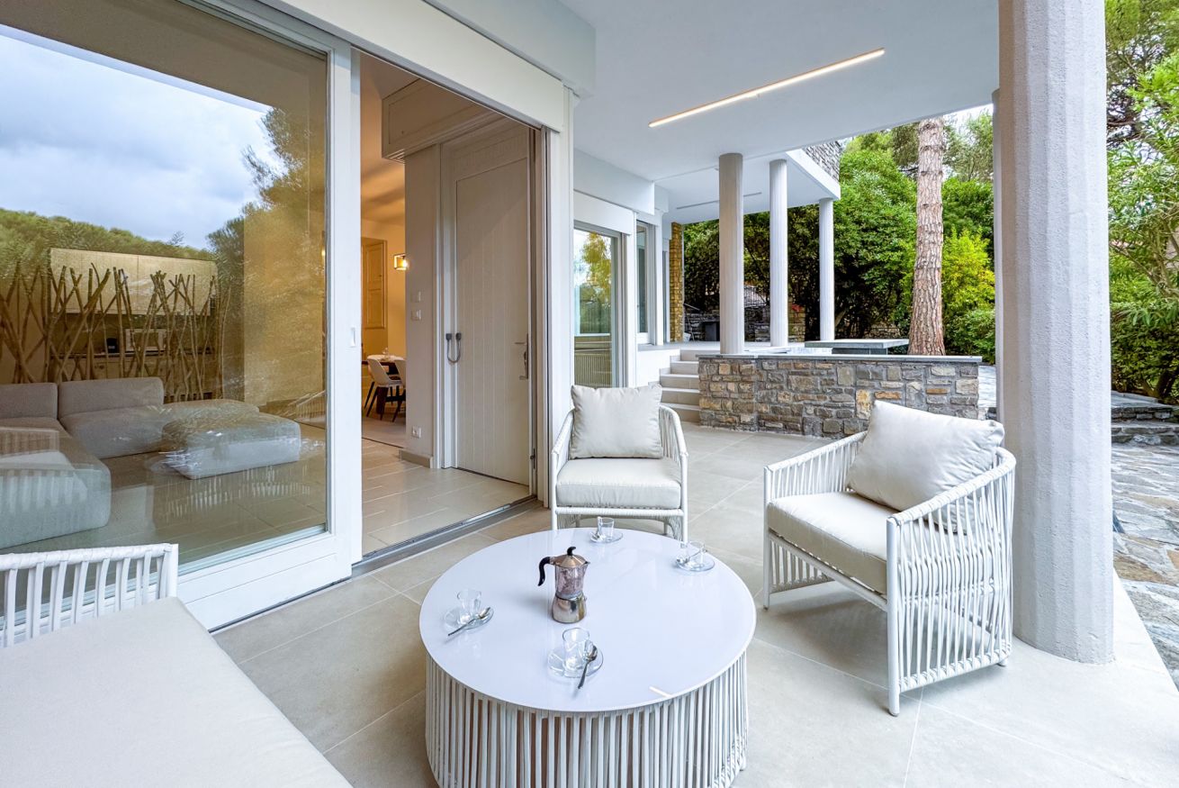Ampio appartamento in villa immerso nella pineta di Pinamare, a soli 200 metri dalle spiagge e vicino al porto di Andora.