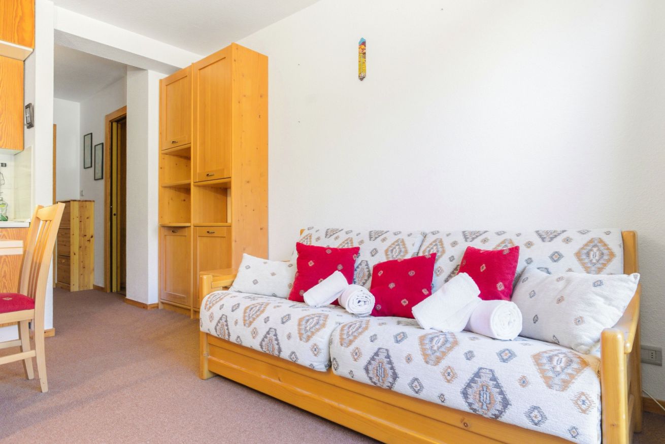 L’appartamento si trova al secondo piano con ascensore ed è composto da un luminoso soggiorno con divano letto, zona ingresso attrezzata con divano trasformabile in due letti singoli (di cui uno estraibile), camera da letto matrimoniale, bagno e balcone, perfetto per godersi l’aria di montagna.
