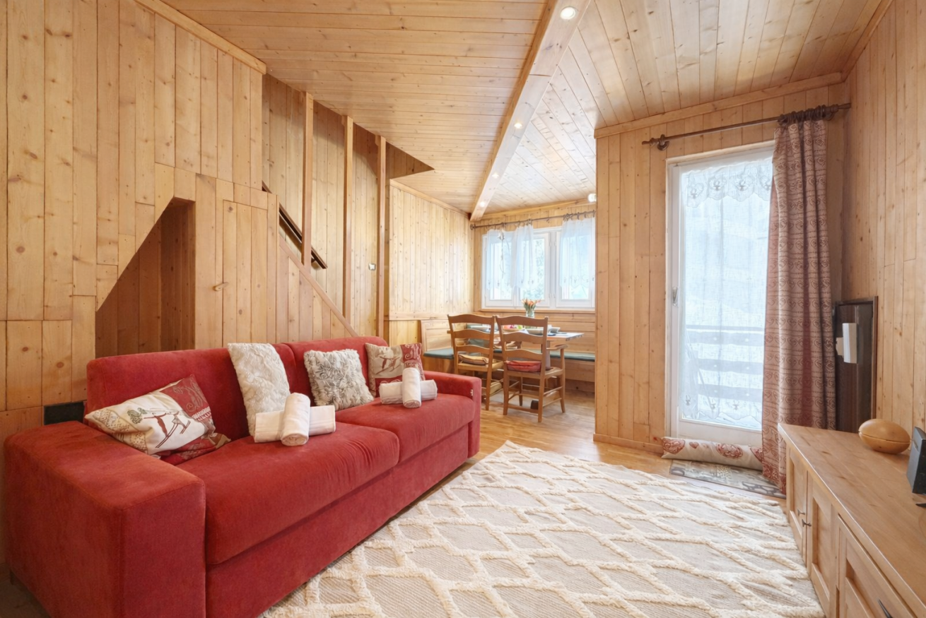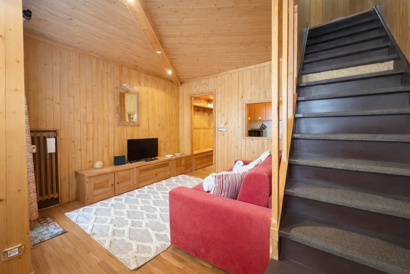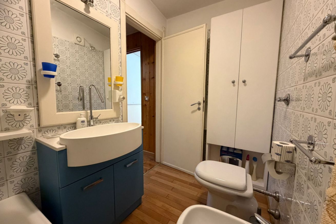 L’alloggio si sviluppa su due livelli: al primo livello si trova il salone con cucina, uno spazio accogliente e funzionale dotato anche di divano letto. Al piano superiore è presente una camera con letto matrimoniale e bagno.