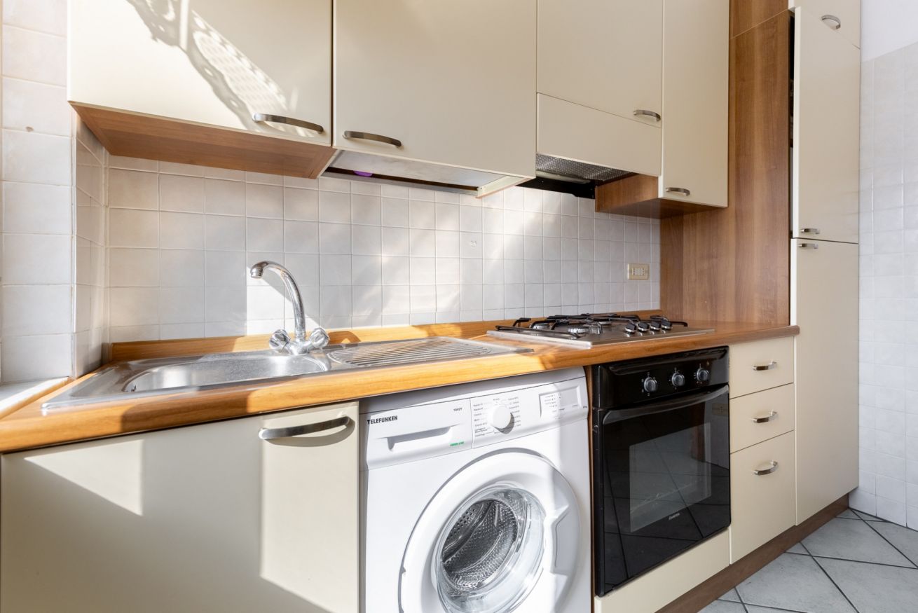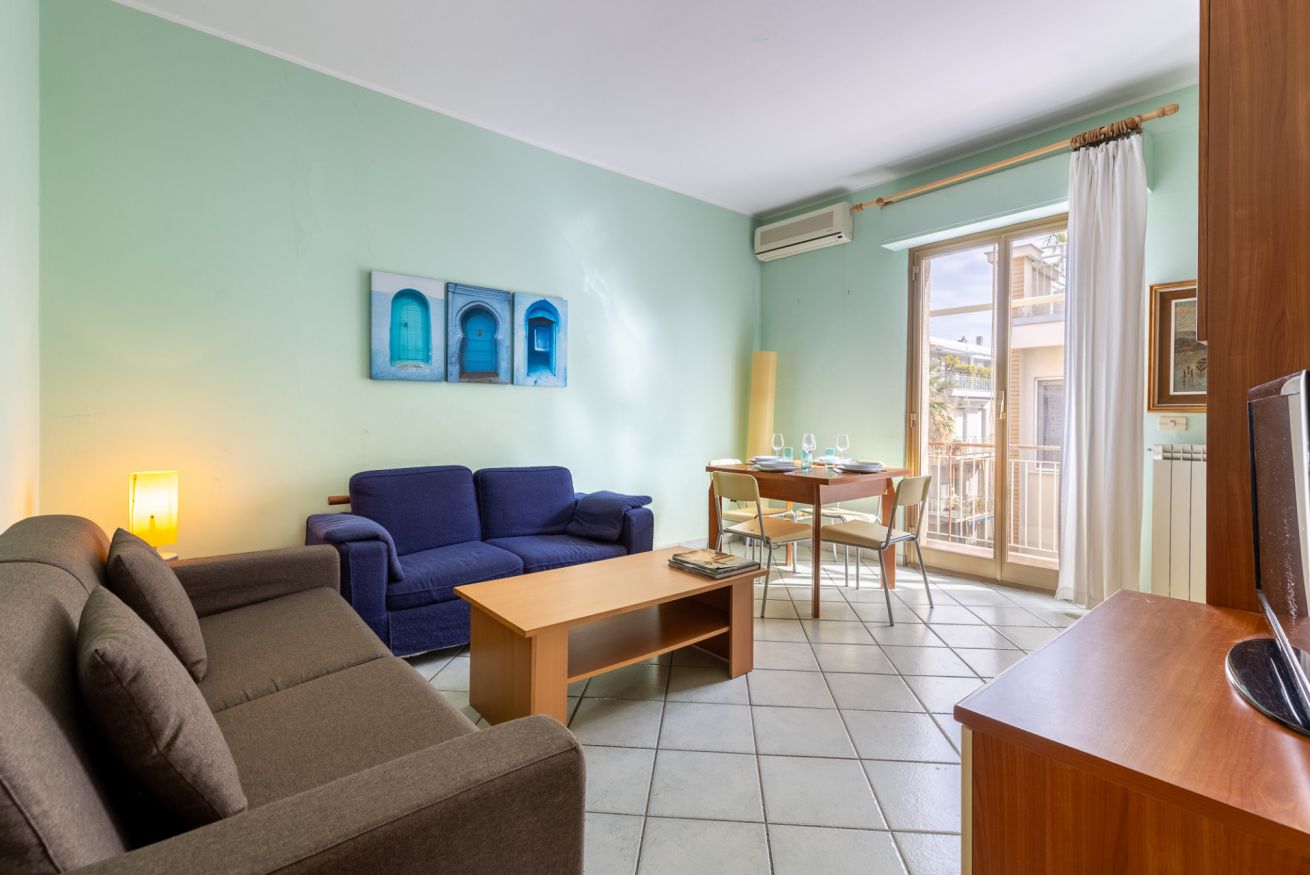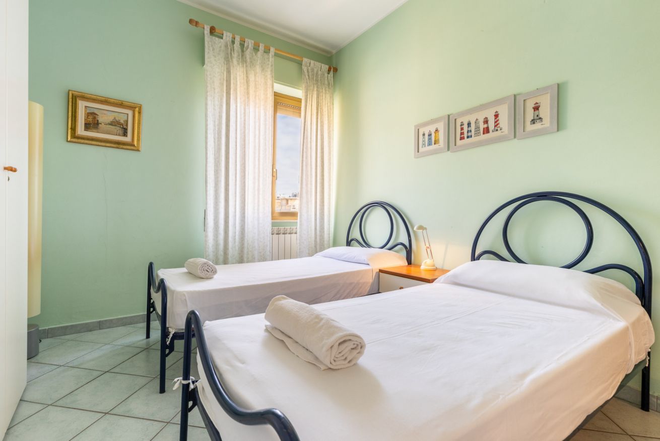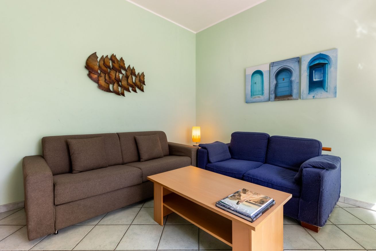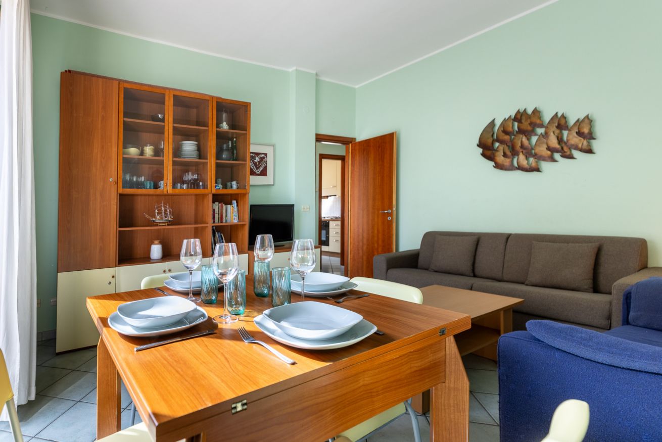 Luminoso appartamento ideale per famiglie e coppie, a soli 100 metri dal mare. L’alloggio dispone di soggiorno accogliente, cucina e due ampie camere da letto.