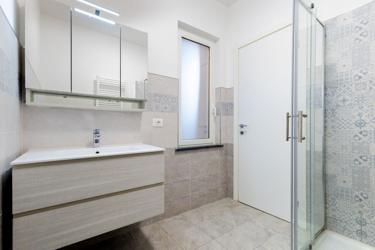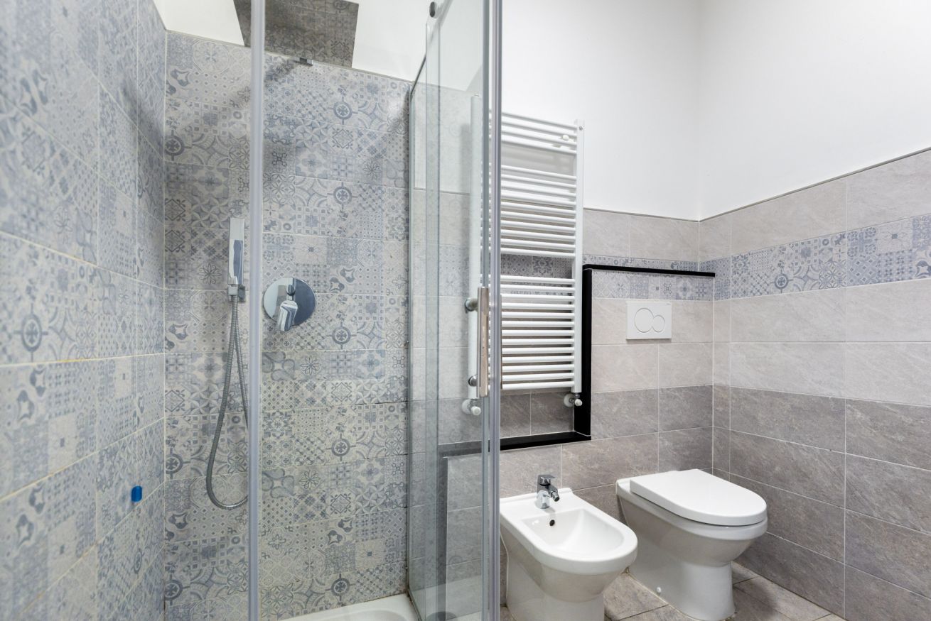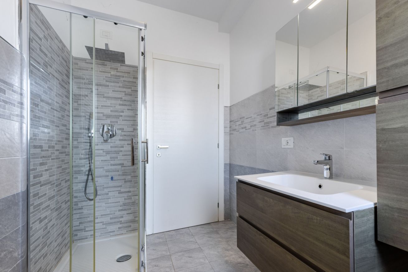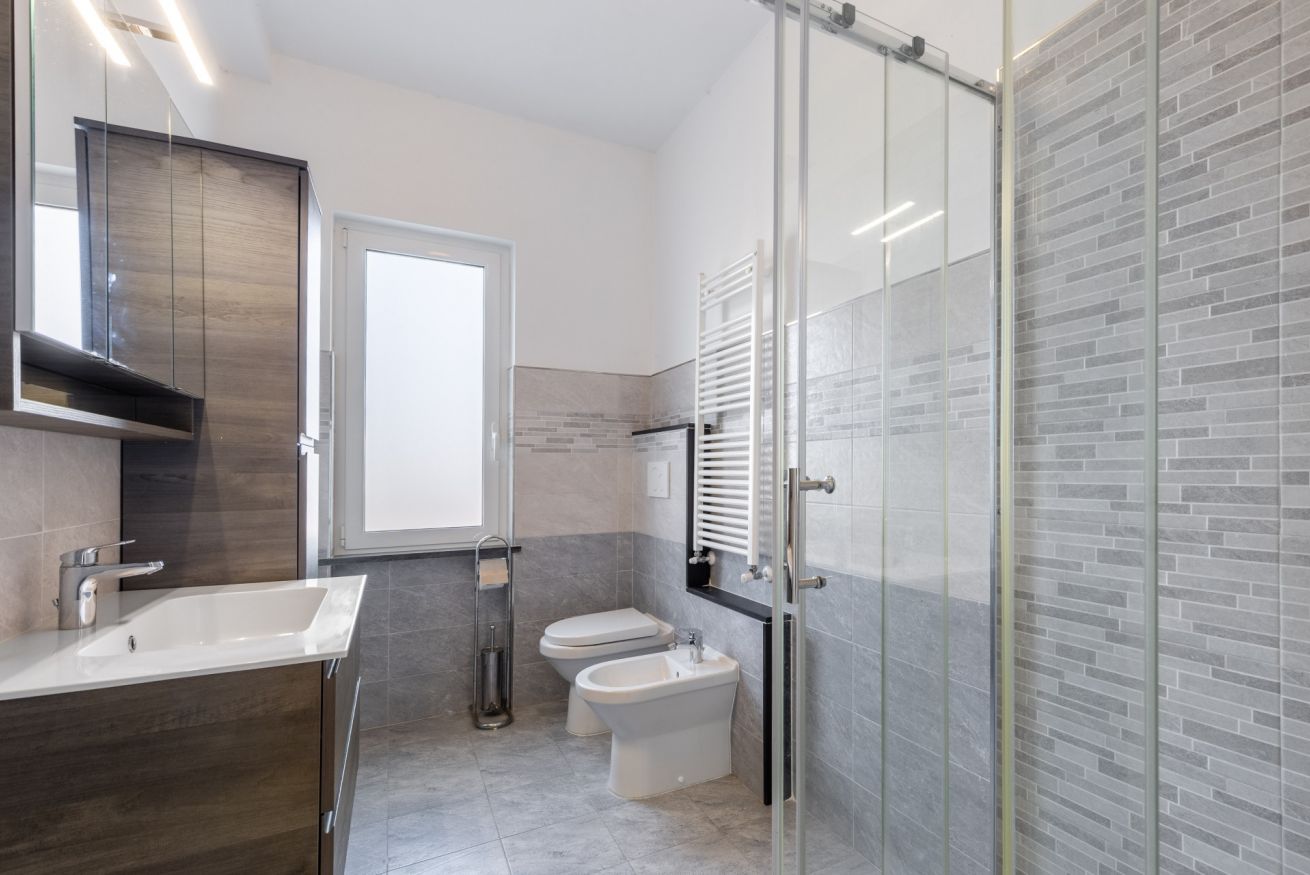 La zona notte comprende due camere da letto e due bagni, entrambi moderni e funzionali.
