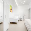 La zona notte comprende due camere da letto e due bagni, entrambi moderni e funzionali.